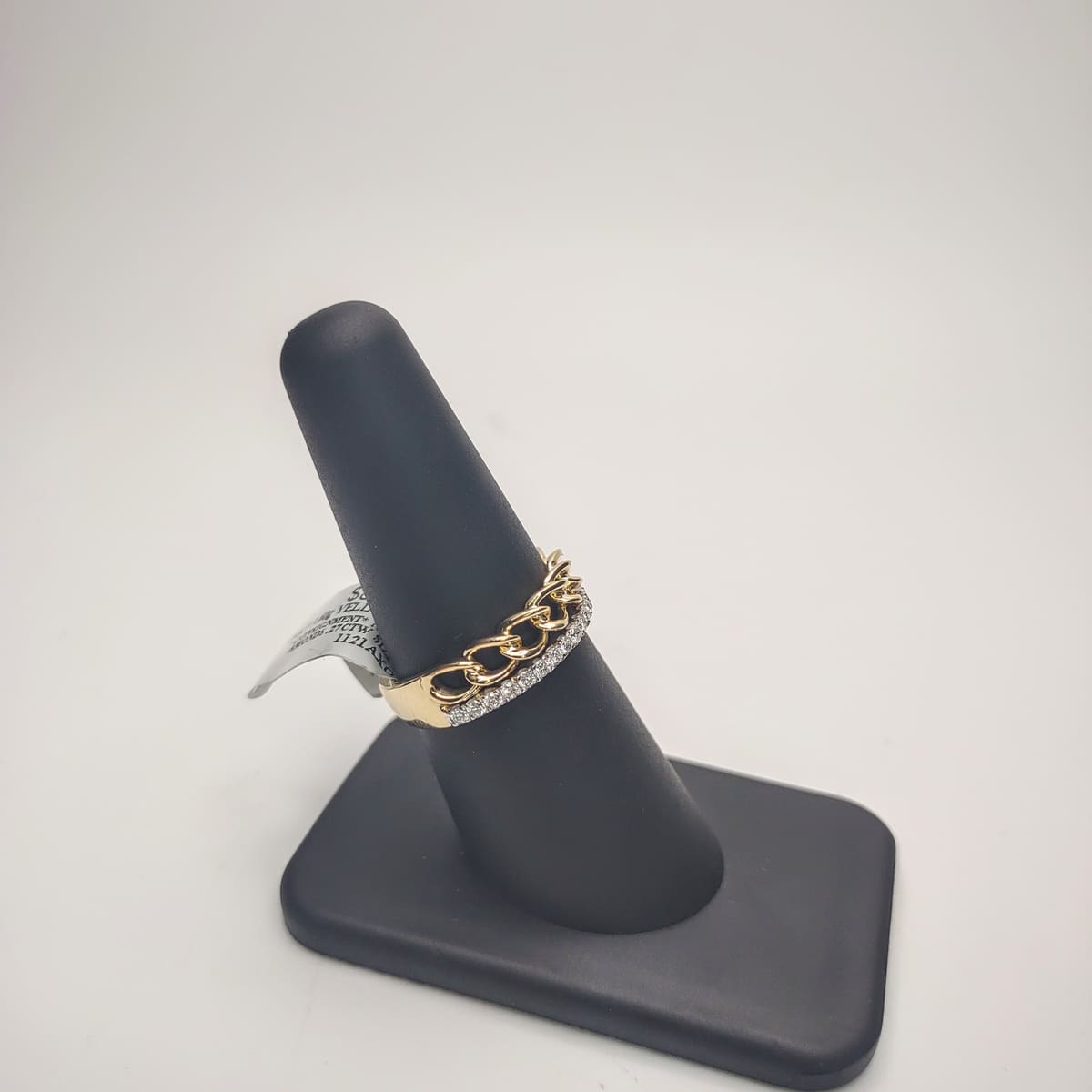 14kt yellow gold Cuban link diamond wedding band weighing 3.6g with .27 carats of diamonds thoughout.