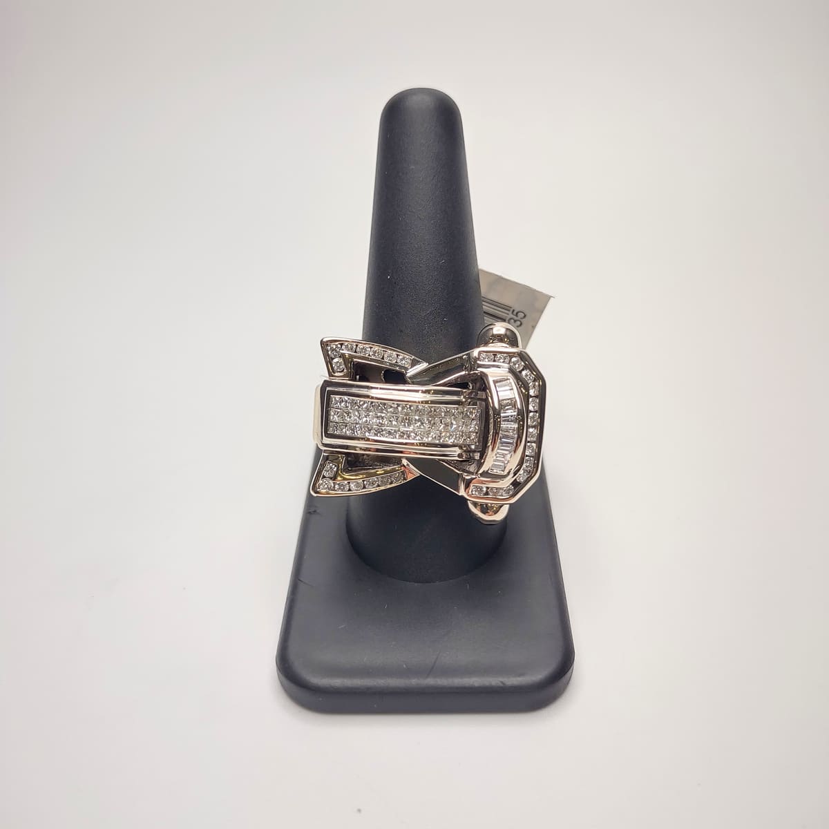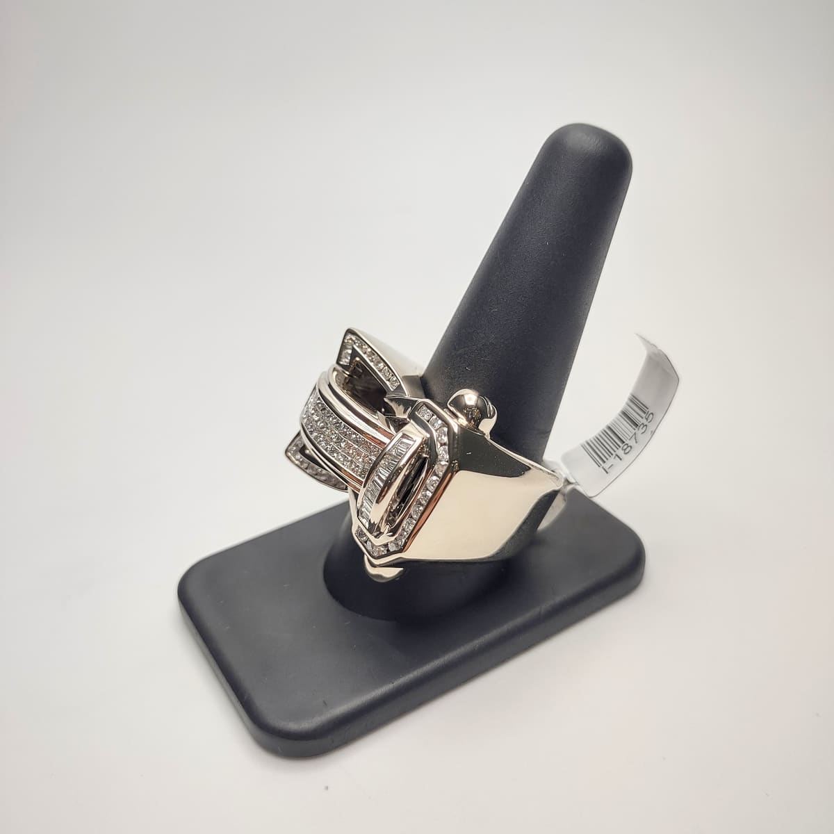 14 karat white gold custom concept diamond ring has 3 different style cuts blended together to create a 2.00 carat total weight. By design this ring will drop jaws, weighing in at 30.30g, it has no competition in it's weight class.