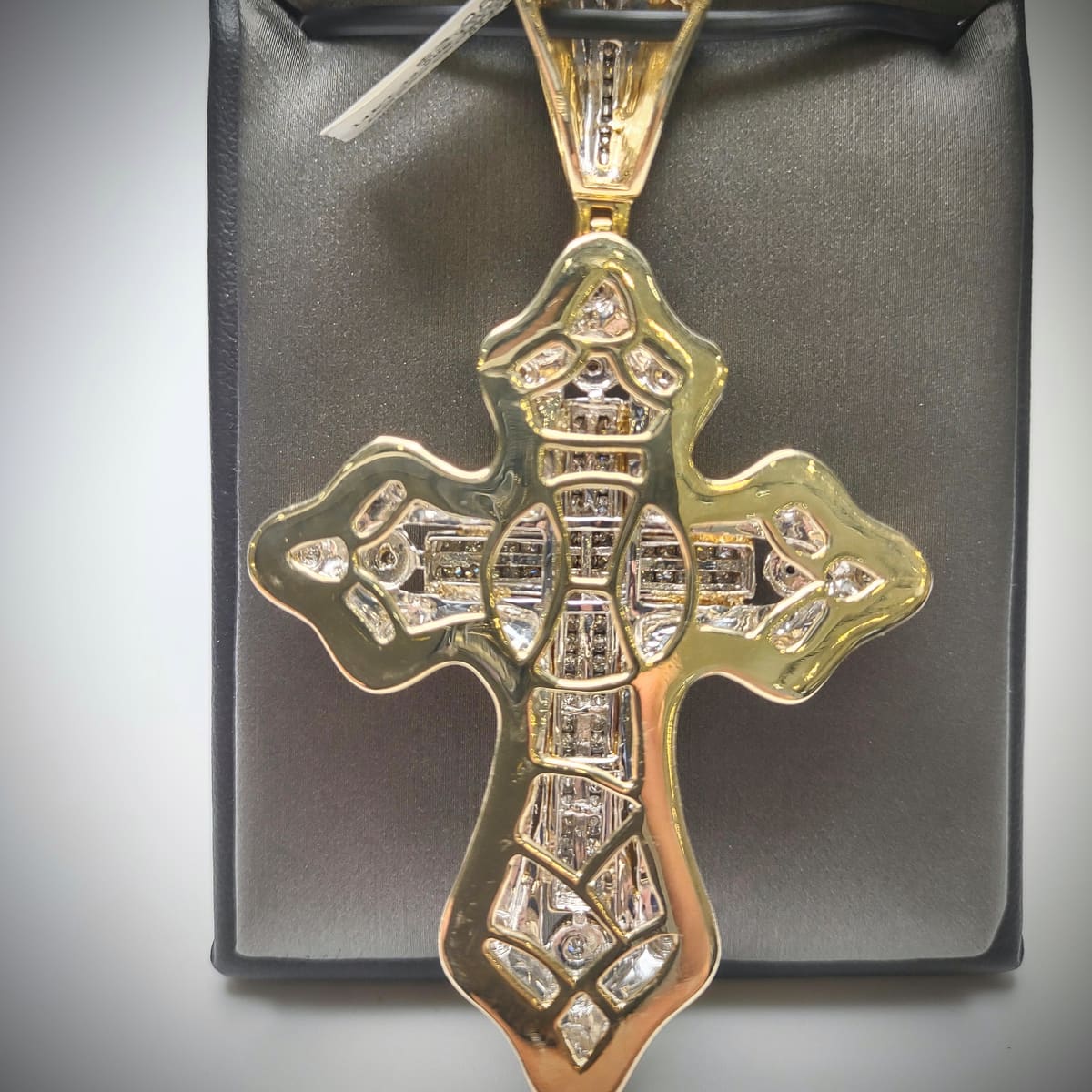 14kt Two-Tone Diamond Cross Pendant 32.9g and 1.5 carats of diamonds.