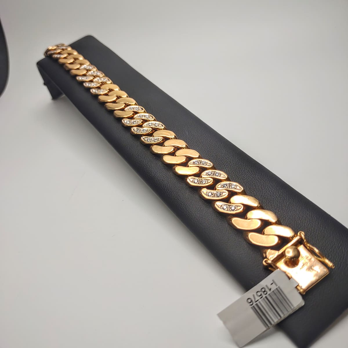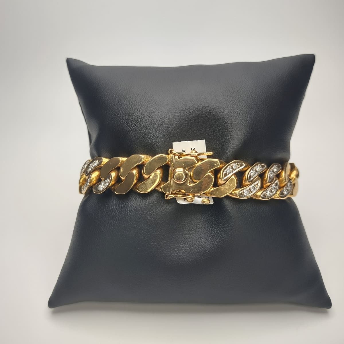 22kt yellow gold diamond Cuban link bracelet weighing 102.1g. this has 1.50carats worth of diamond and is 8.25" in length.