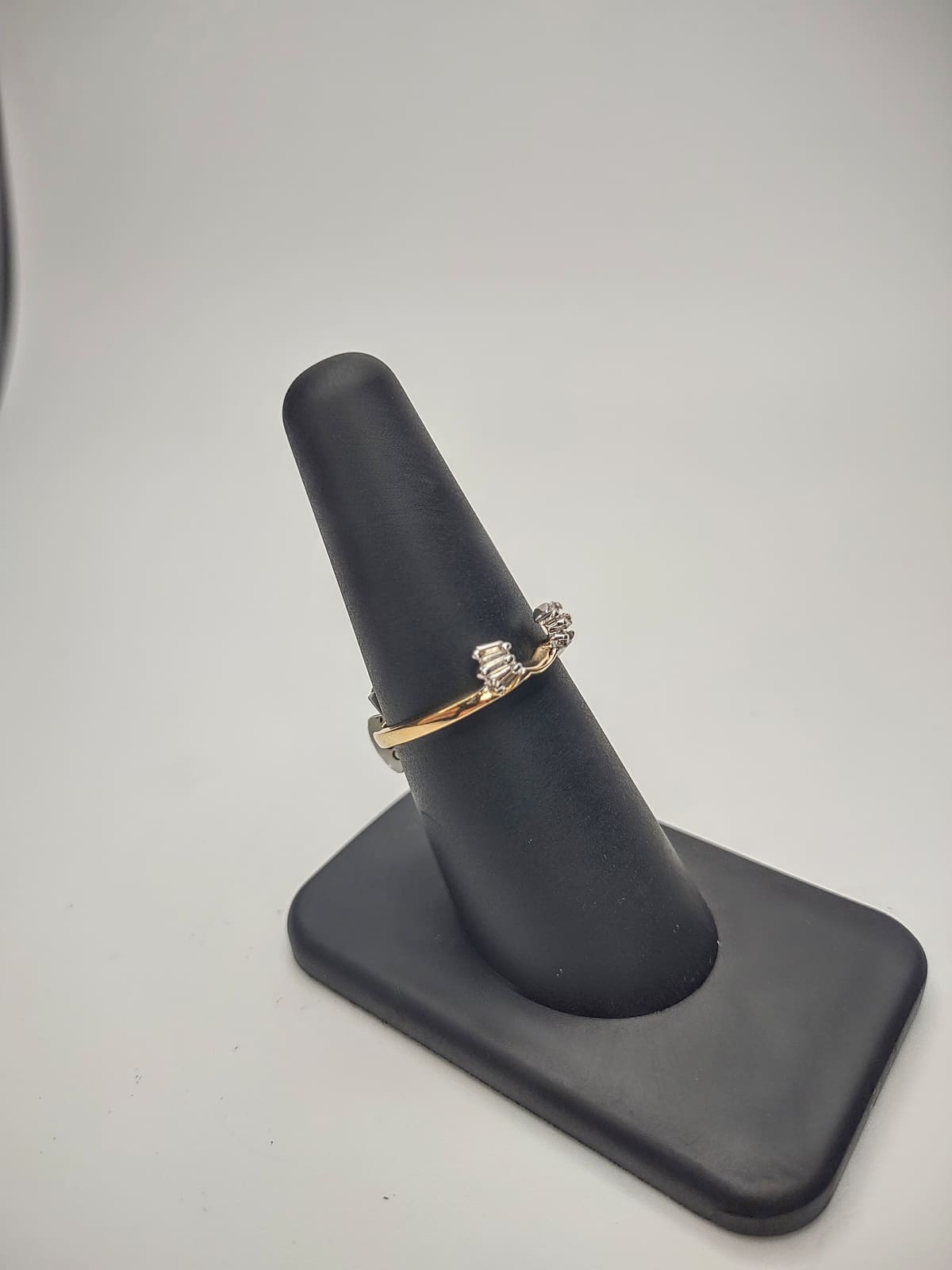 14kt yellow gold diamond wedding band weighing 1.7g with a total of .09 carats worth of diamonds throughout.