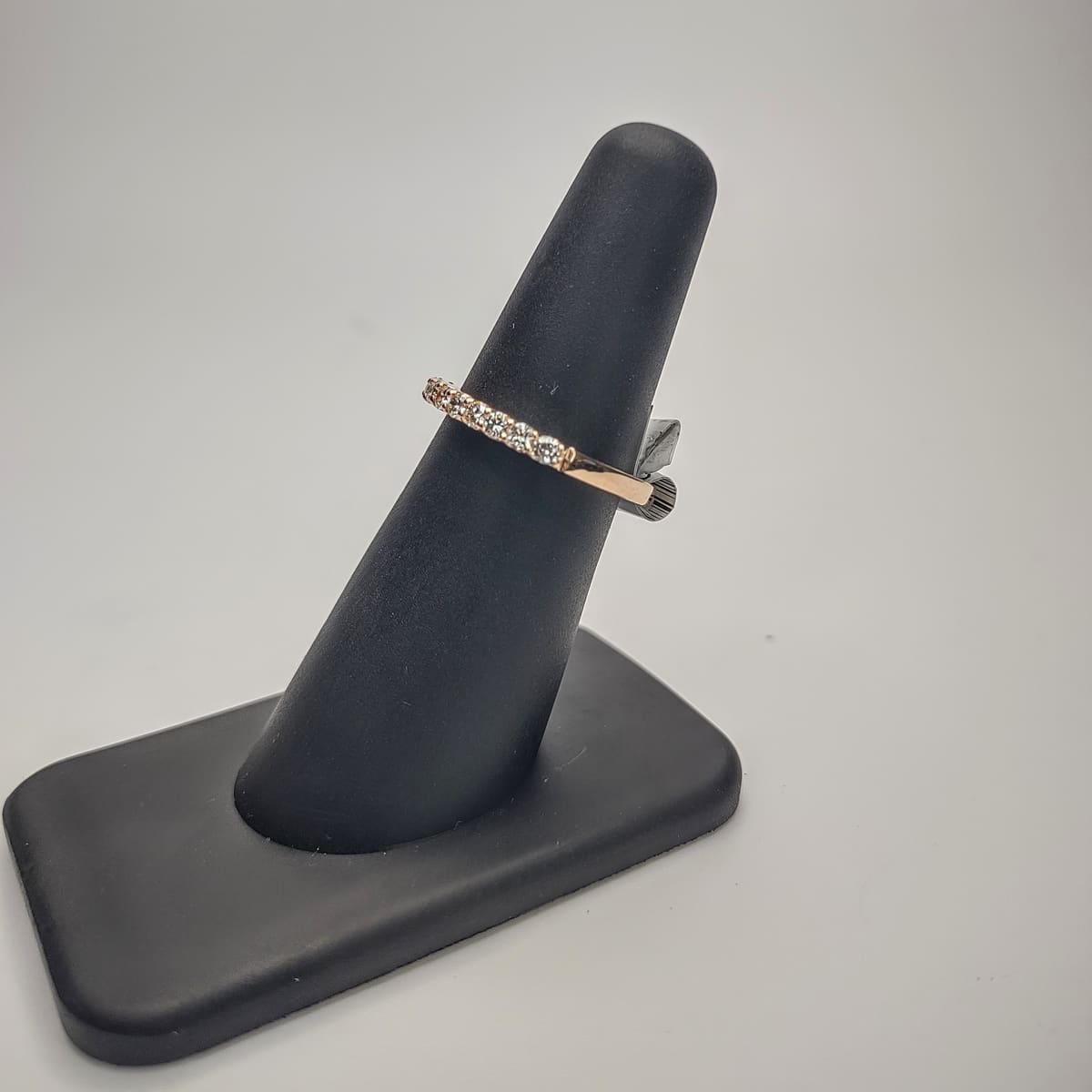 14kt rose gold diamond wedding band weighing 2.2g and has a total of .40 carats of diamonds throughout.