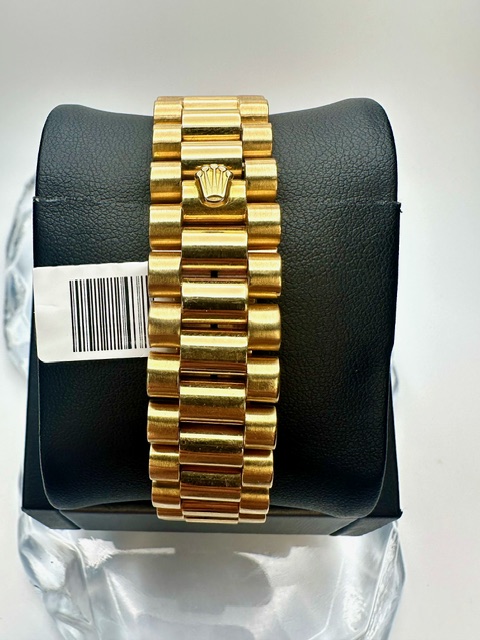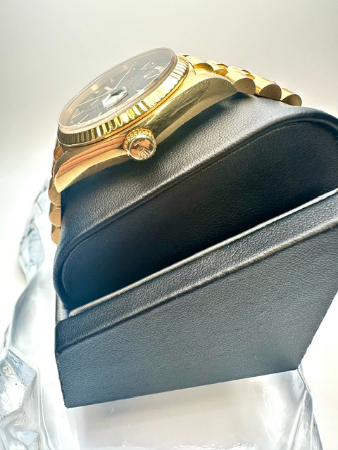 Rolex presidential style Day Date with an 18k president bracelet, 36mm black roman numeral dial, weighing approx. 131.6g